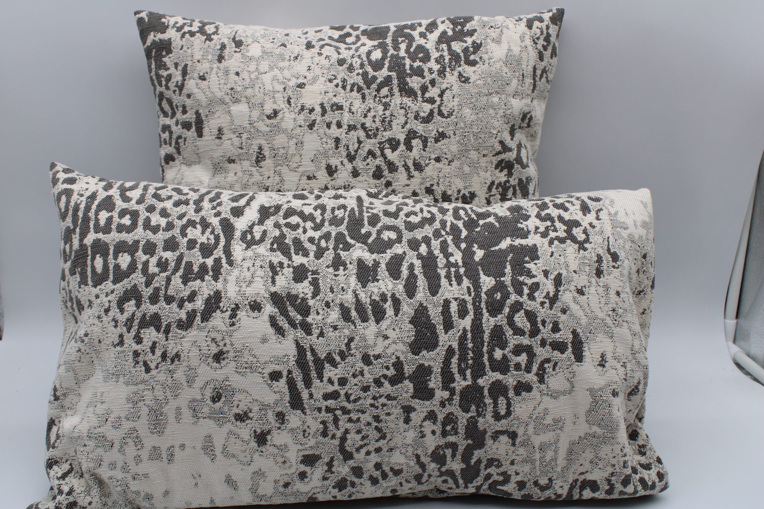 Housses de coussin confectionnées dans notre atelier en tissu d’ameublement jacquard,