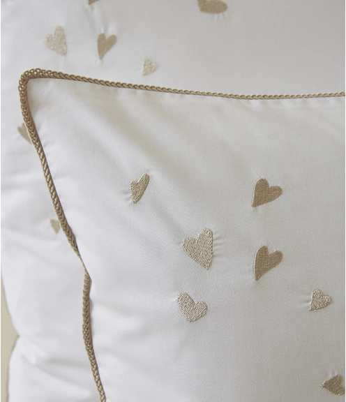Ce linge de lit en percale de coton brodée sur fond blanc, glissera dans votre chambre, une discrète touche de romantisme dans un style espiègle et raffiné.