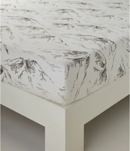La percale blanc cassée sur laquelle est imprimé ce merveilleux panorama offre une belle pureté à ce linge de lit.