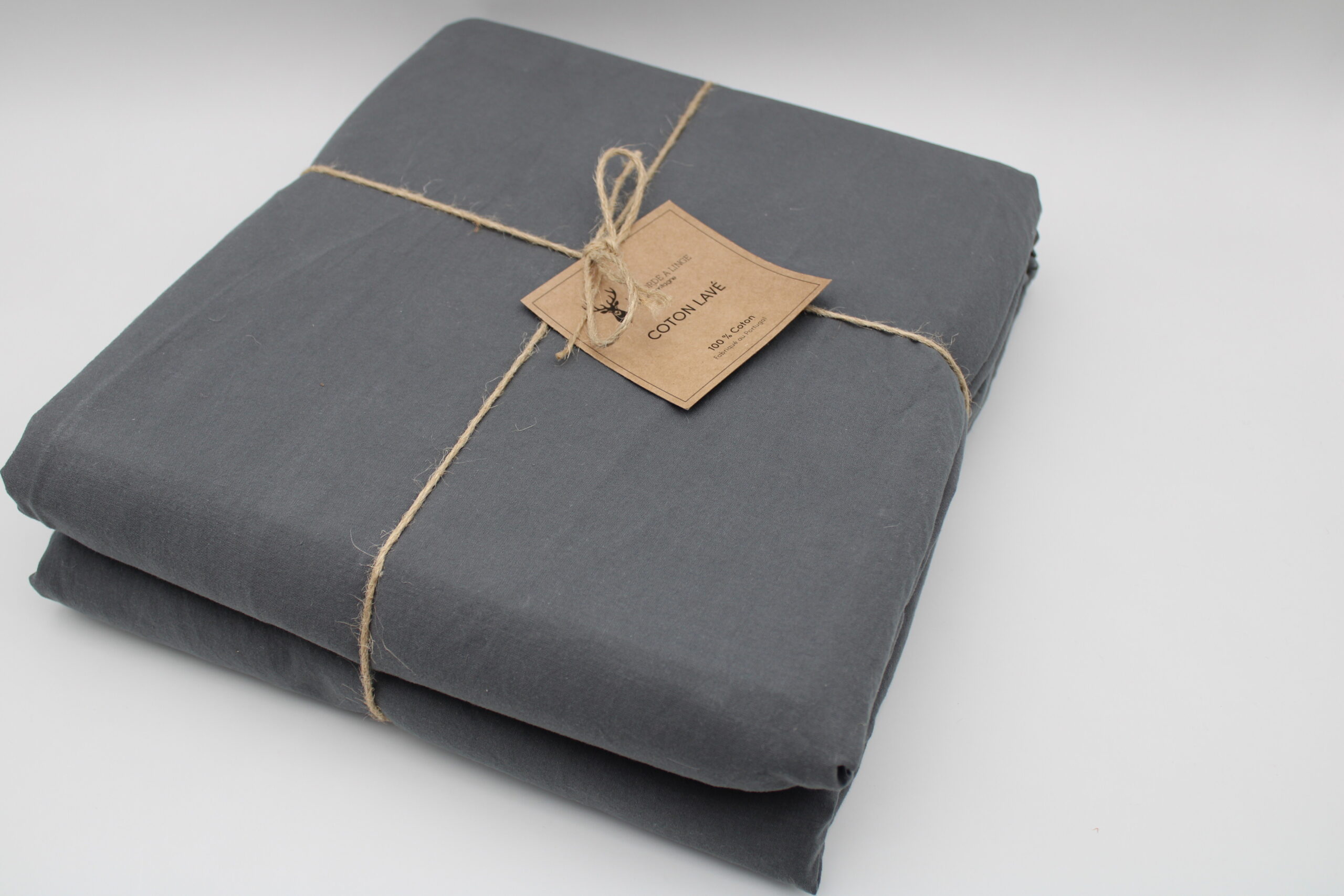 Linge de lit gris foncé en coton lavé