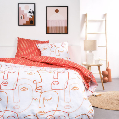 Parure de lit 240cm x 220cm + 2 taies 65cm x 65cm 100% coton Visages