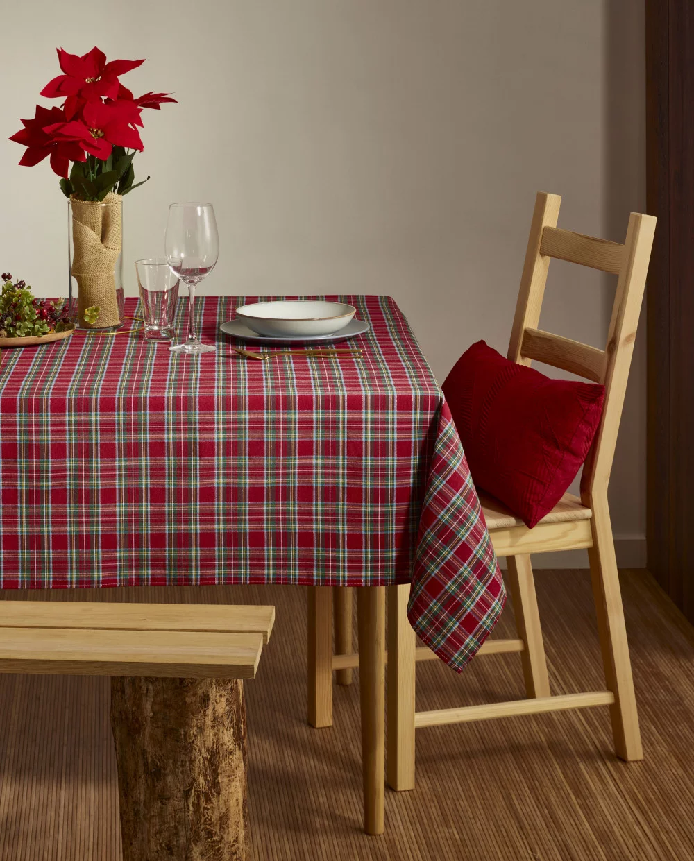 Tissu Tartan rouge et vert à carreaux, enduit, vendu au mètre