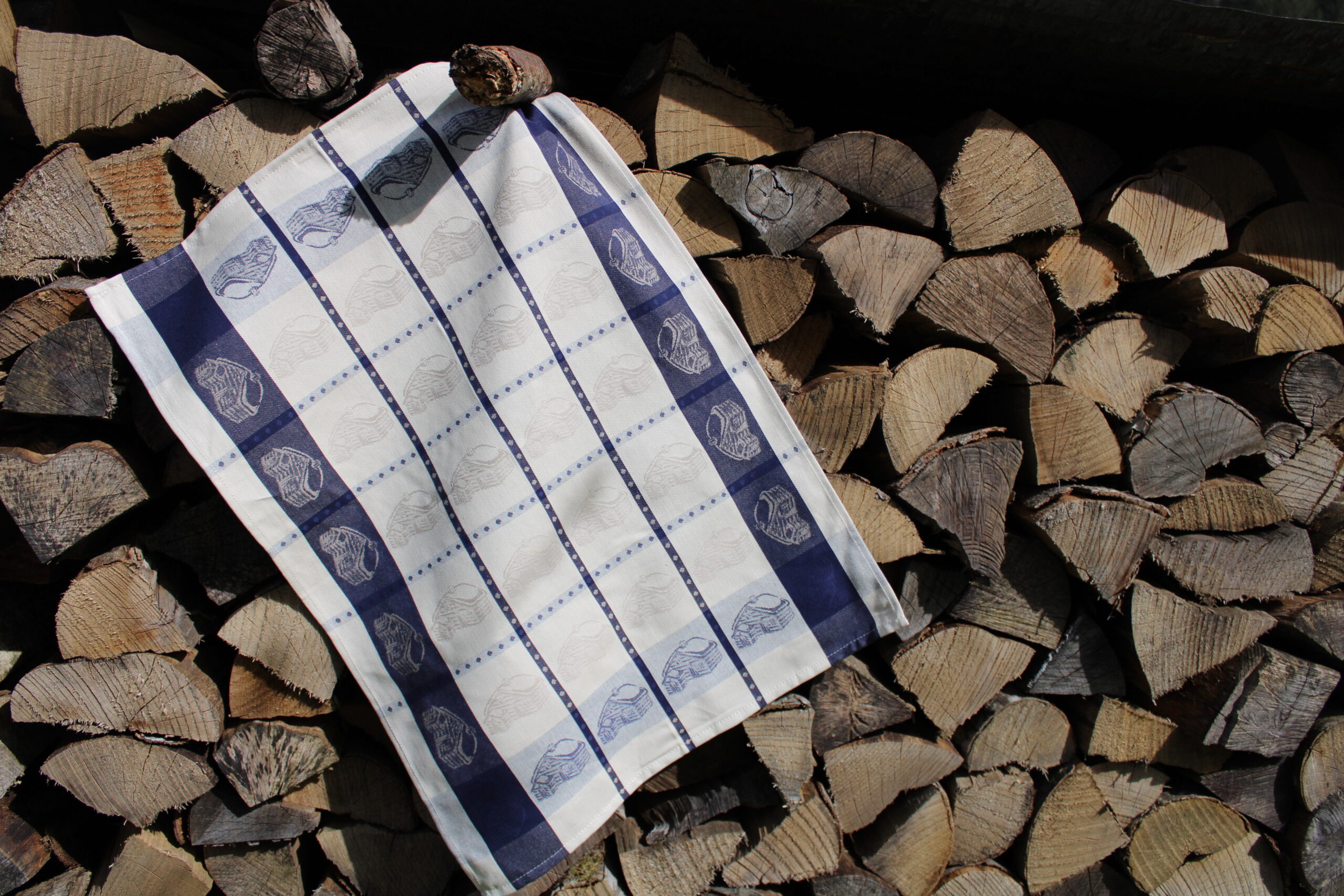 Torchon jacquard 100% coton Chalet écru et bleu